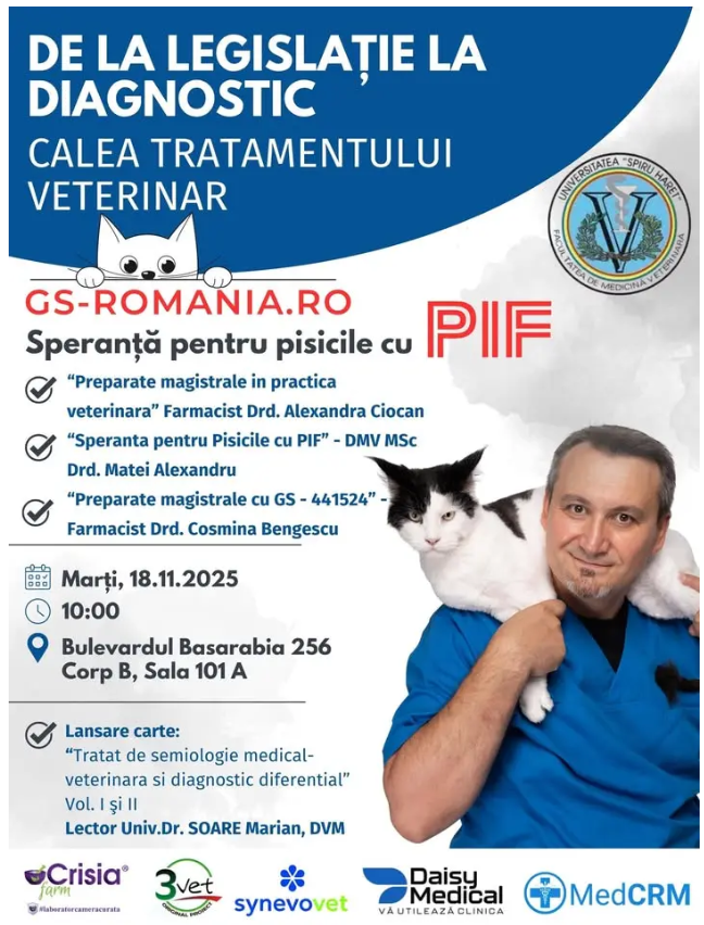 Webinar – Cistita idiopatică felină: actualități în patogeneză, diagnostic și tratament Perioada desfasurare: 19 noiembrie 2025 Eveniment creditat cu puncte EMVC Cost: GRATUIT Organizator: Oameni si Companii Locatie: Online –