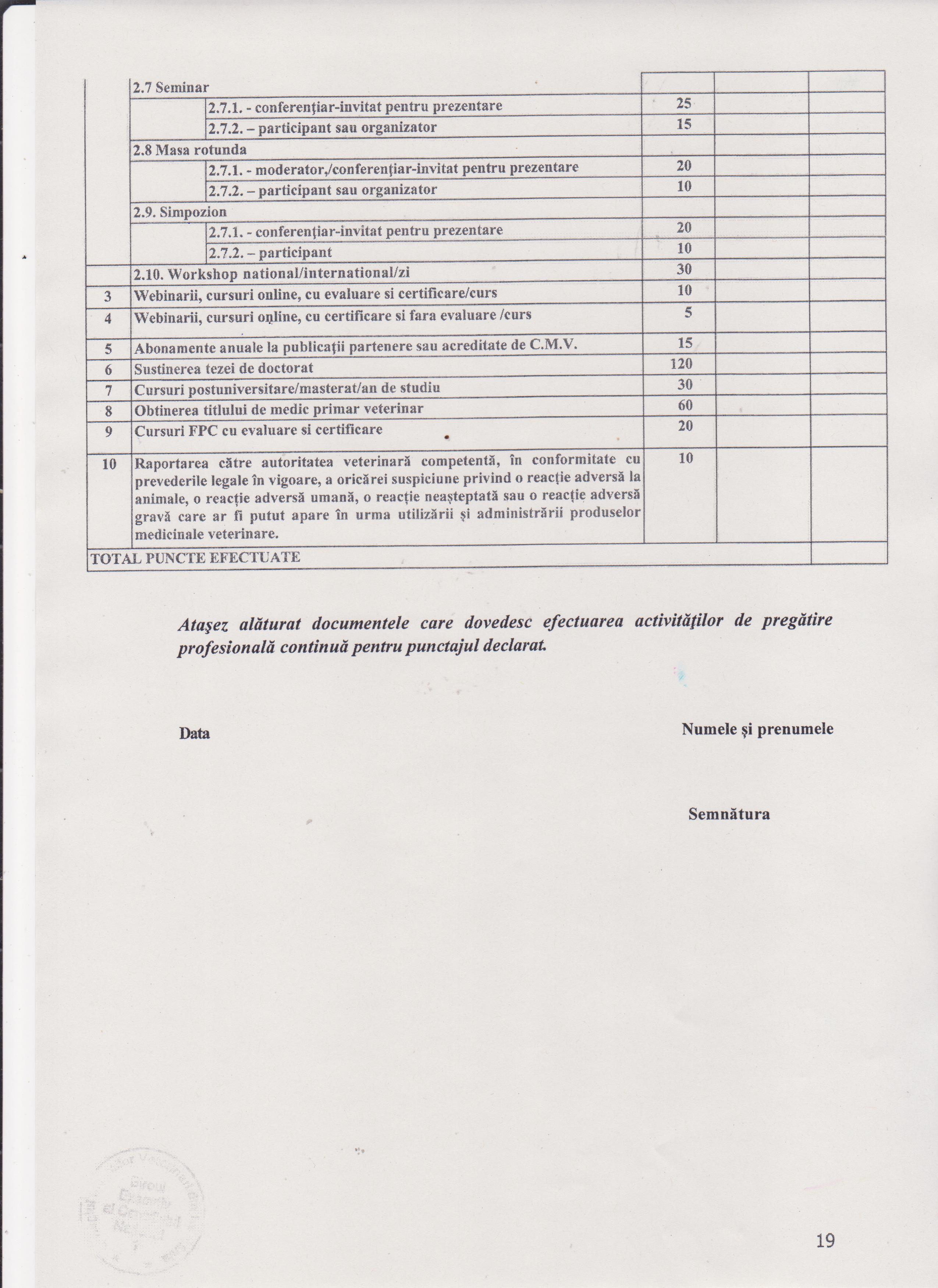 Va reamintim ca pentru a va pastra atestatul de libera practica valid, sunt necesare urmatoarele: achitarea cotizatiei de membru (in cuantum de 50 lei / luna) si acumularea a 120 puncte EMVC anual.